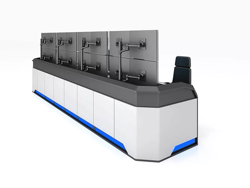 A: Áno. K dispozícii sú zakrivené kolaboratívne konzoly a zónové analytické stanice, ktoré podporujú simultánne príkazové, dispečerské a spravodajské práce s bezpečnými zaoblenými hranami pre dlhodobé pracovné pohodlie.
